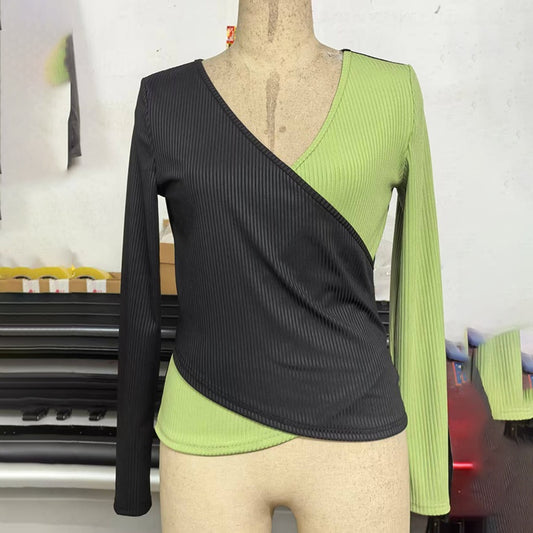 Women's Elegant V-Neck Cross Front Sweater, Color Block Knit Top For Spring And Fall Layering