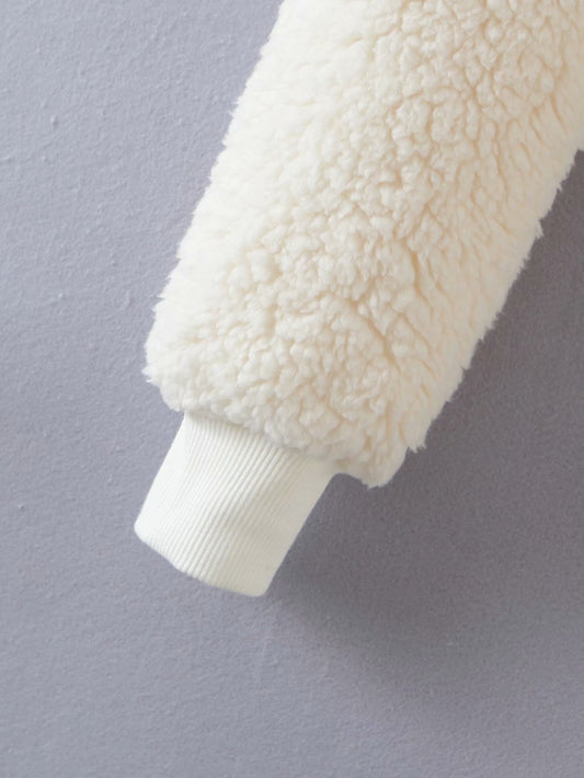Short Furry Half-Zip Hooded Pullover Sweatshirt