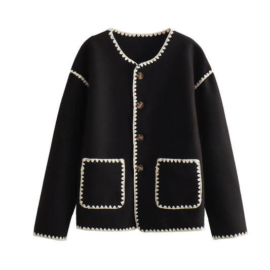 Graceful European And American Style Color Matching Pocket Decorative Woolen Fashionable Jacket